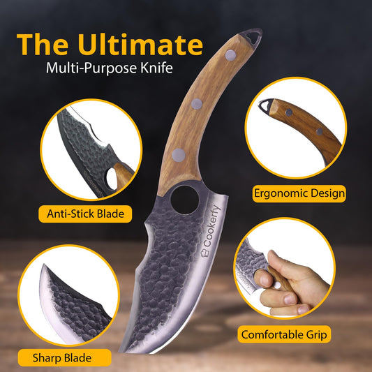 Cookerfy Japanese Style 6" Butcher Knife - Razor Sharp Chef Knife with Ergonomic Grip & Genuine Cowhide Leather Sheath - High Carbon 5cr15 Steel Blade with Rosewood Handle - Kitchen Accessories