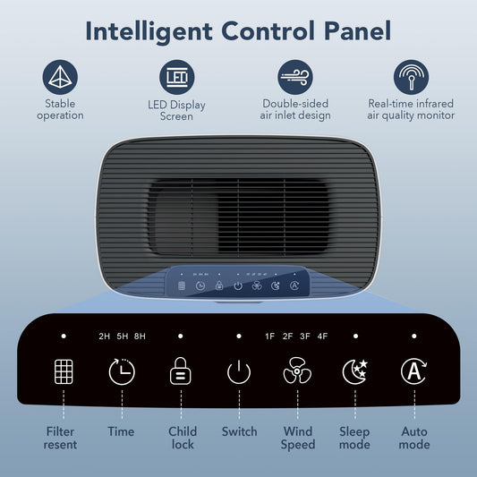 MORENTO Air Purifiers for Bedroom Home Large Room up to 1076 Sq Ft with PM 2.5 Air Quality Sensor, Remove the Pet Hair, Dust, Smoke, Air Cleaner Sleep mode 24db, White, 1 Pack
