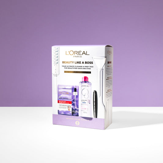 L'Oréal Paris Beauty Like A Boss Gift Set - Revitalift Filler Hyaluronic Acid Mask, Micellar Water & Mega Volume Mascara Brush