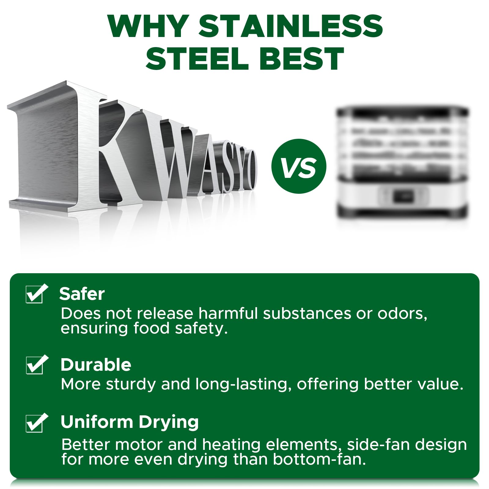 Kwasyo 12 Trays Stainless Steel Food Dehydrator, Dual fan 360° Efficient Drying, 24H Adjustable Timer & 30-90℃ Temperature Control, Overheat Protection, Dehydrator Food Dyer uk for meat fruit, 800W